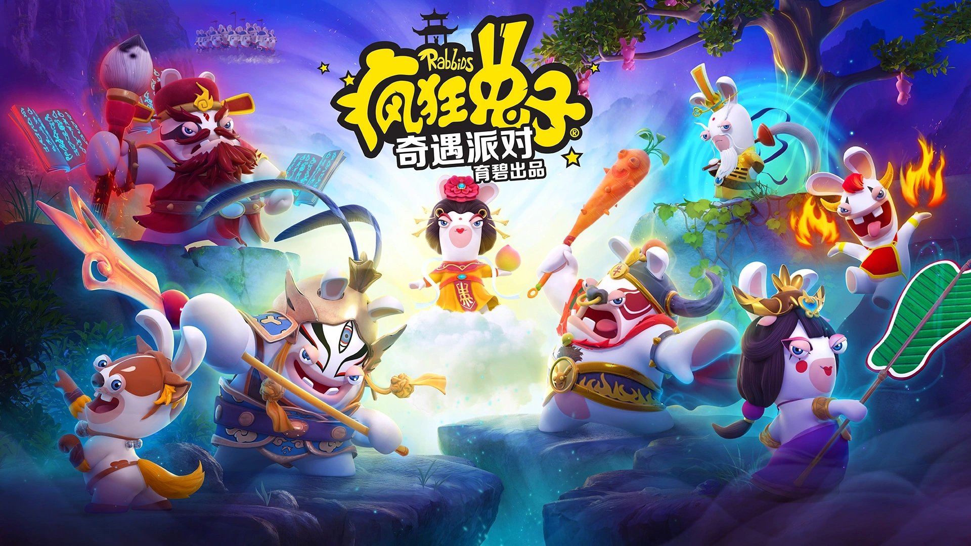《疯兔派对》里沙僧佩戴的项链变成了呆萌的小黄鸭,当终年不沉的头骨变成漂浮水上的小鸭时,竟也符合传统文化中“自渡”的意味。还有孙大圣的形象也经过很棒的改良,京戏脸谱配合电竞耳机,不就是经过糅合的“赛博朋克”艺术吗?当然,像铁扇公主和红孩儿这类人物形象也特征鲜明,具有很高的辨识度。而疯兔作为育碧的吉祥物,在《疯兔:回家》和《雷曼》等系列中存在一定人气基础,让这场“自由派对”充满惊喜。