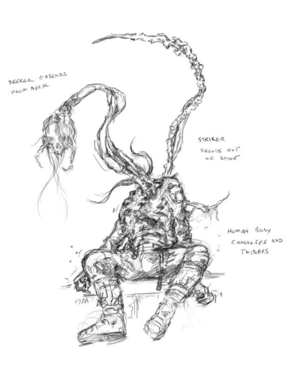 Necromorphs 的创作者 Ben Wanat(Dead Space1&2的制作设计师和 Dead Space 3 的创意总监)表示,Necromorphs不是第一创意,它们是一个快乐的意外。“一开始它是非常开放的。我们甚至还没有确定威胁是什么。可以科幻,可以恐怖。但究竟是什么?想法很多,留下了很多可能性,”该团队探索了杀手机器人的想法,但这个想法并没有被贯彻到底。“我们发自内心的想要一些有机的生物,因为我们觉得机器人还不够可怕。” 最终,他们受到了 System Shock 中的怪物的影响,从那时起,感染是威胁源的想法就像流感一样在脑内蔓延开来。