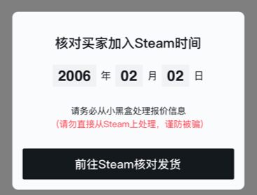 作为卖家,出售物品请务必确认买家Steam注册时间!请在全程在APP内操作!