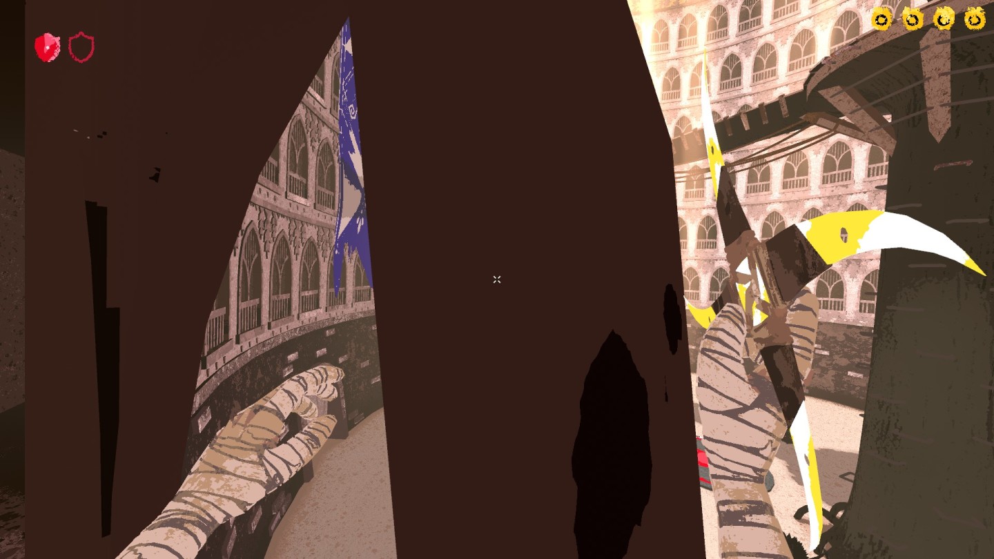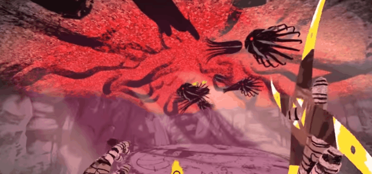 而玩家需要将其一一斩杀,用的就是一只回旋镖。游戏采用线性流程,不同关卡有着风格迥异的场景和各具特色的挑战:数量较多的敌人,有远程攻击能力的敌人,需要攻击特定弱点的敌人等等。