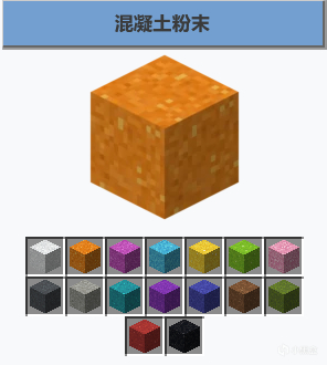 新增方块:混凝土,混凝土粉末,带釉陶瓦(均有16种不同染料的颜色)