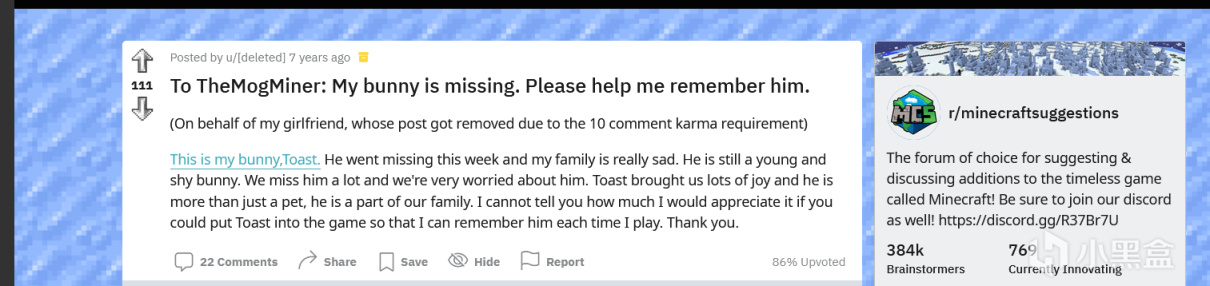2.当一只兔子或者兔子怪物蛋被用命名牌命名为“Toast”的时候会出现一种特殊的皮肤,来纪念xyZenTV的女朋友的兔子Toast。
