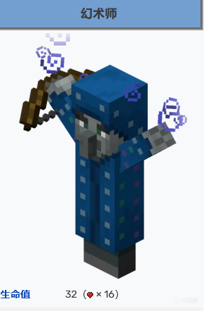 幻术师会攻击12个方块内的玩家、村民、流浪商人和铁傀儡。它可以使用咒语和弓来攻击。