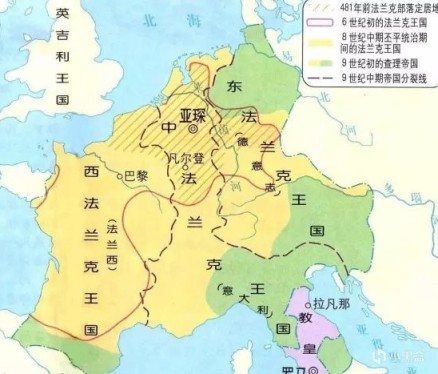 查理三世,绰号胖子查理,他身处的加洛林王朝一直都不是很太平,他在876年便从自己的亡父日耳曼人路易手中继承了士瓦本(即阿勒曼尼亚,如今德国的西南地区)。879年,他又从他的哥哥手中继承了意大利王国(当时的意大利王国只有亚平宁半岛北部的一块区域)。教皇约翰八世在881年,又将他加冕为“罗马人的皇帝”(即神圣罗马皇帝)。经过“家族传承”和政治上的种种努力之下,查理三世将查理曼帝国、中法兰克王国、西法兰克王国和东法兰克王国进行整合,统一了整个法兰克。