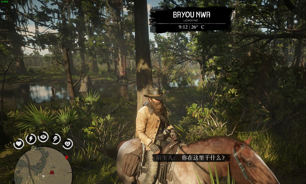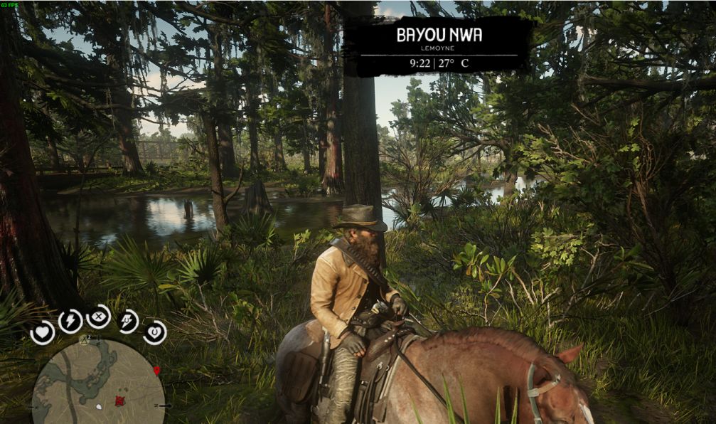 虽然在其他游戏中,动态模糊不建议开启,但在荒野大镖客中,动态模糊选项优化出奇的好。由于不需要频繁高速旋转镜头。在帧数低于60时,开启动态模糊能直观地感受到帧数的提升且眩晕感较小(虽然实际并没有提升帧数)。