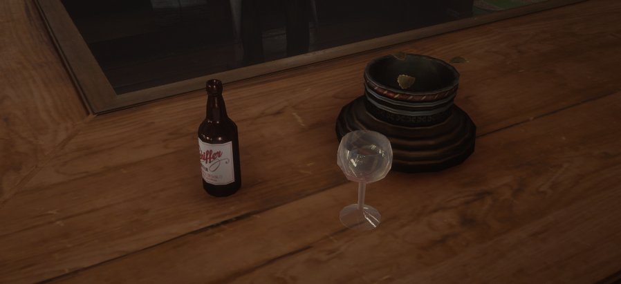 在这两张图中,上方为全局照明超高,下图为低。可以明显看出:上图的整个场景更明亮,尤其是房子右边的窗户。由于在游戏中截图存在帧率误差,实际静止时的帧率,低与超高在3%左右,帧数影响较小,但对夜晚的氛围和明亮度有明显的提升,画面党建议开超高。