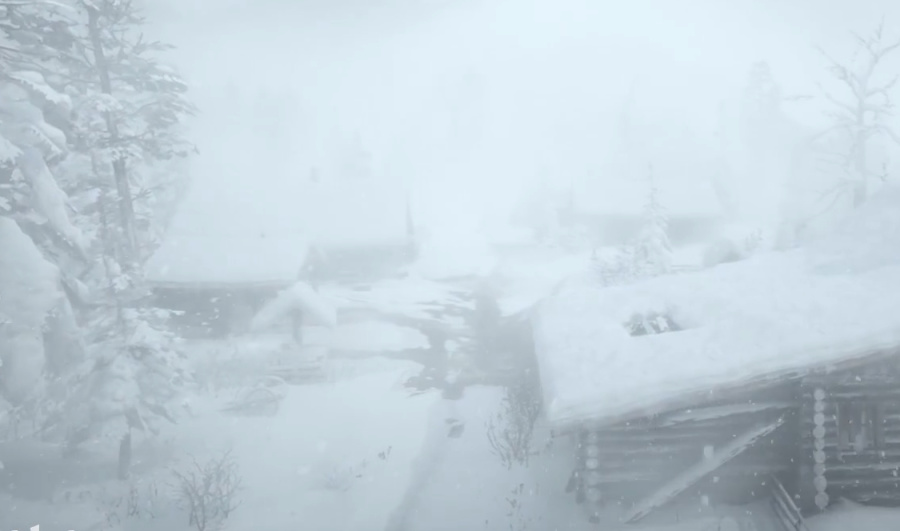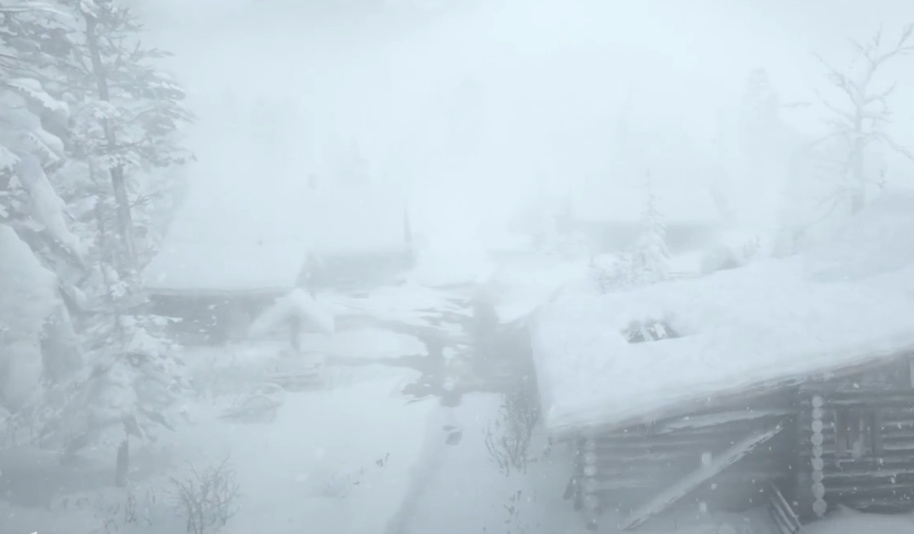 上图为低,下图为高,可以看出在低设置下,雪地的脚印十分不自然。在一些老游戏中,由于当时的开发成本低,再加上技术不成熟,经常出现类似的锐利的几何体边缘。而开到超高后,雪地脚印变得十分自然,不刻意观察很难留意到瑕疵。