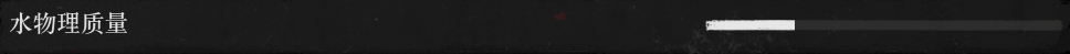 水物理质量在0格时效果最差,几乎没有水花反馈,所以不建议开0格。当开启1格时,互动效果开始发生,已经有了比较好的效果。开启2格后已经有了比较明显的物理效果了。从第三格开始,效果提升已经不明显,但帧数下跌剧烈。到了第四格,物理特效已经没有了明显的提升,而帧数却已经骤降。在0格至1格时,帧数下降1.7%。在0格开至2格时,帧数下降3.3%。在0格开至3格时,帧数下降13.3%。在0格开至4格时,帧数下降48.3%,将近跌了一半。