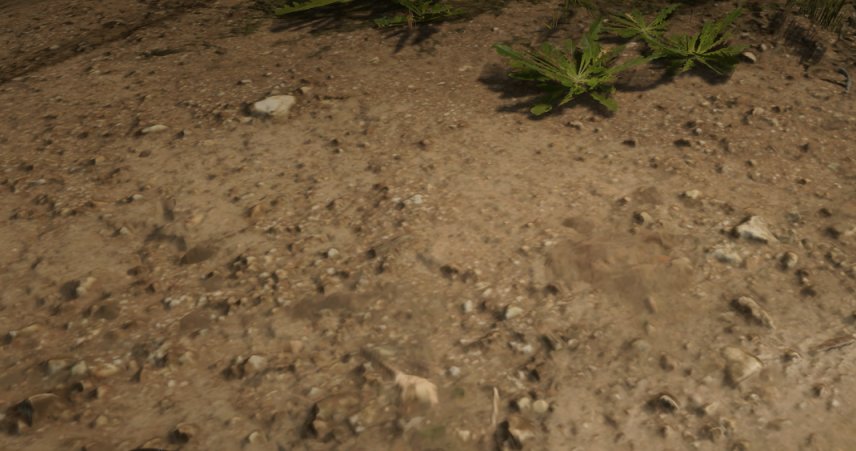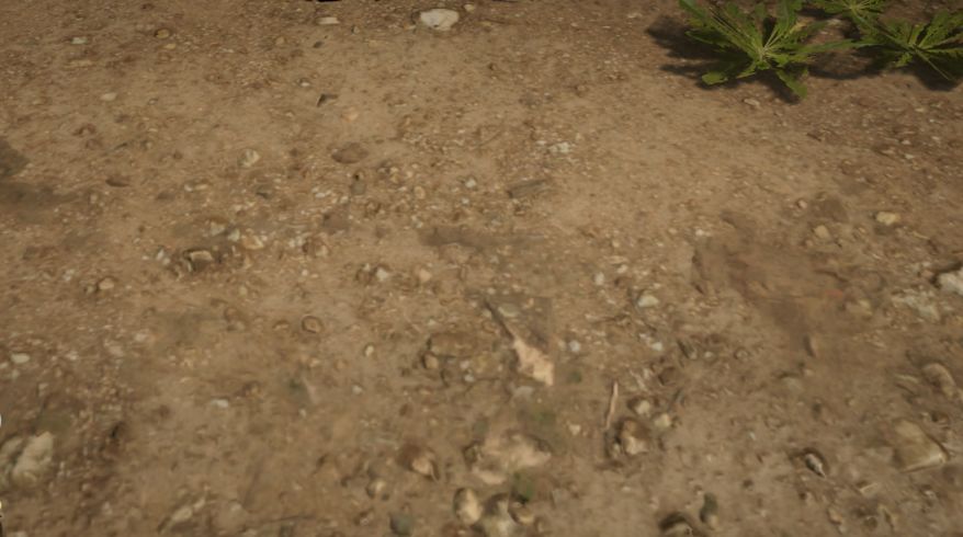 可以看到,由低开至超高,地面上的小石块和草的阴影明显加深。个人认为该项对观感有比较明显的提升。由低至中,能让阴影从无到有,帧数下降约1.2%,中至高无明显帧数变化和观感变化。由高至超高会让阴影加深,由低至超高帧数下降6%~7%。低配建议开中,为增加观感可开超高。