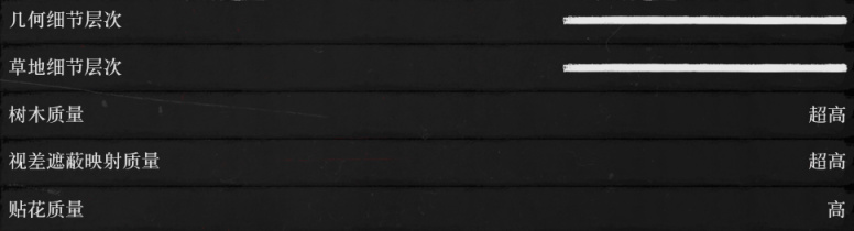 由0格开至2格时,远处的草地变得更加茂盛,在高处或大场景中,这个效果会比较明显。在开至3格或4格以上时,增加的细节会越来越不明显。而开至9格或10格时,远处的草地阴影会被打开,远处的草地层次会更加明显。算上0格,此项共11格,每开高一档会有约2.82%的帧数下降,通常建议开2至3格。