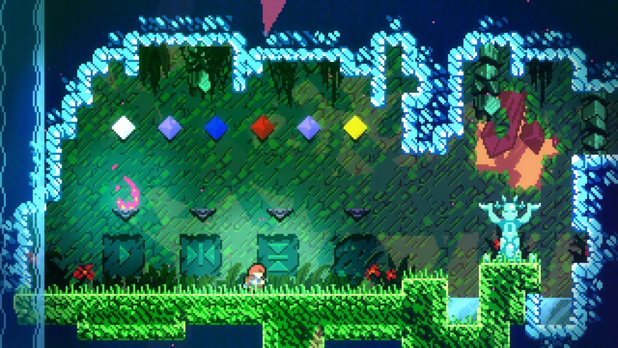 如果你侥幸发现了这些能力会有一种强烈的自豪感,觉得自己偷鸡成功打开了新世界的大门,后面才会发现一切都在作者的掌握之中,反而会更佩服作者的匠心。更令人佩服的是游戏的全部技巧都只依靠方向键、冲刺、跳,《蔚蓝》拥有十多个进阶技巧。从初级的蹬墙跳到用于速通的Demo跳,只靠六个键便能全部完成,让玩家能用最少的按键打出最华丽的操作。看似简单的按键布置也令玩家放松了戒心,更难发觉潜在的能力宝藏。