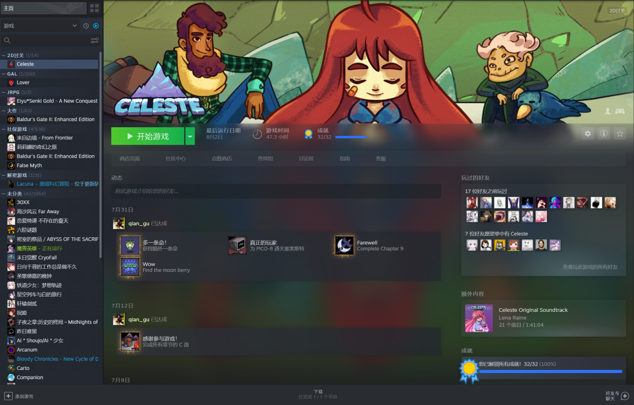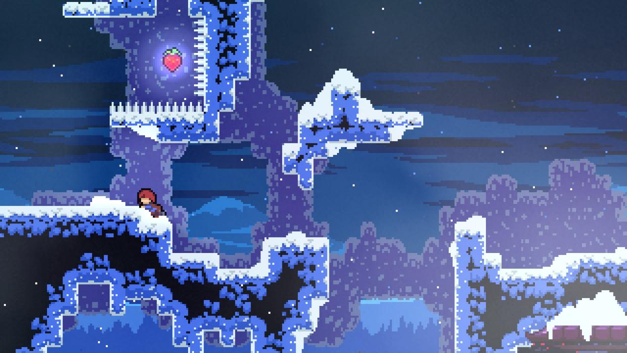 玩家的游戏流程上有一条开发者预设好的学习路线,掌握这些新技巧为玩家提供了新体验和良性的正反馈,促使玩家更积极的去面对新的挑战。多阶段的挑战总是能令人找到目标,甚至当你完成全成就后发现游戏多出了一个金草莓,原本熟悉的地图也发生了改变,你还可以在异变菜单中更改游戏规则来给自己更大的挑战。哪怕完成全成就后也不能榨干《蔚蓝》的全部游戏潜力,单凭本体便能给玩家带来数十乃至上百小时的游戏内容,小白和高手都能从中收获体验,甚至小白也能通过《蔚蓝》进阶到高手的行列,这就是《蔚蓝》无与伦比的魅力。