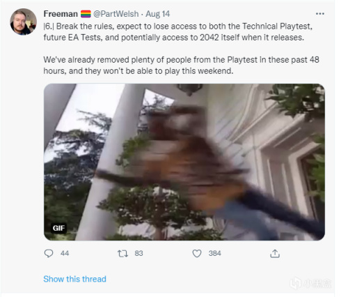 而EA欧洲的首席社区经理Walsh发布推文谈论了游戏的测试情况时也反复提醒各位玩家,泄密者将无法进行技术测试,而且之后也不能在游玩《战地2042》。
