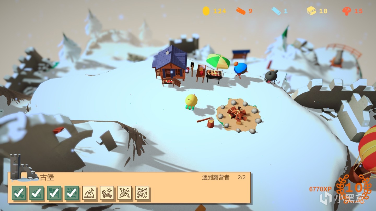 每个营地都有相应的基础设施要求,例如营火和住宿点。此要求在游客增加时也会扩充,例如提供餐饮和娱乐。你可以建造简陋的帐篷,也可以提供舒适的木屋;摩天轮固然让人心驰神往,但沙滩果然还是和泳池更搭;雪山上开冰淇淋摊可不成,倒不如来一份热气腾腾的烧烤吧......前期资源可能稍微有些受限,推荐多造餐馆收钱,很块就可以积攒足够的资本来重建营地。