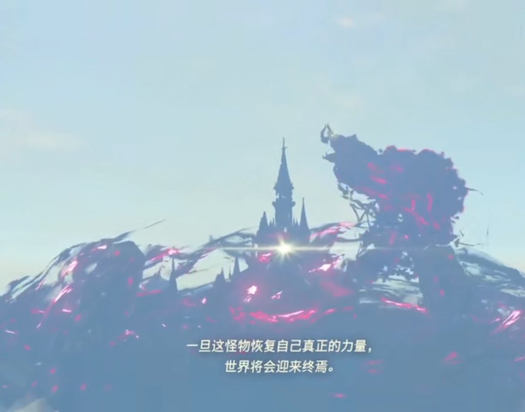 看着远处的景色,林克忍不住俯瞰四周。忽然他注意到一座被黑紫色气流笼罩的城堡,气流凝聚成一条恶龙,将城堡紧紧缠绕,哪怕相隔千里都能听到震耳欲聋的龙吼。