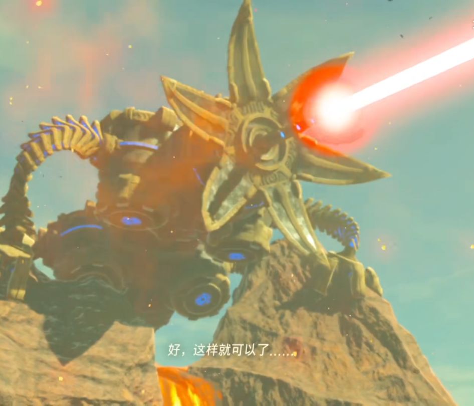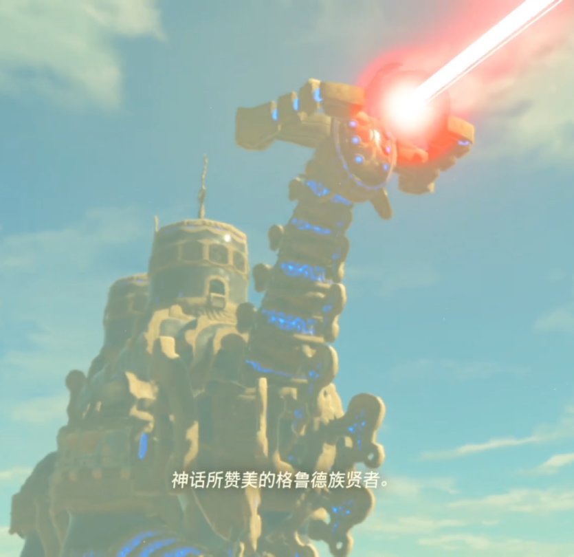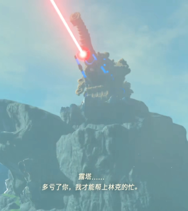 “我在神殿的顶上等你。”老人看到浑身伤痕、面上带灰的林克,化成了一道光,消失在林克的面前。
