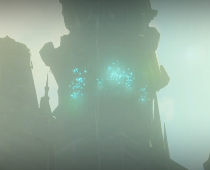 林克一下子摔倒在地,紧紧抓住中间的控制台。沙石飞扬,大地撕裂,一座高耸入云的尖塔拔地而出,巍然矗立。