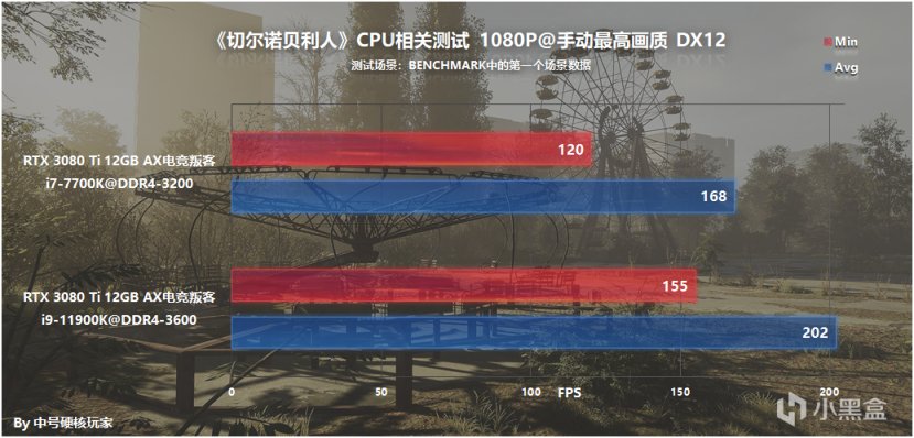 CPU测试使用i9-11900K关闭核心和调整频率来模拟,四核八线程的规格性能已经可以相当于超频之后的i7-7700K,内存频率是搭配的DDR4-3200频率测试的,《切尔诺贝利人》这款游戏地图不算很大,但既然还存在绘制距离选项就存在测试CPU的意义,更多的是这种类型测试,更多是给那些低U高显的玩家参考(比如说暂时预算只够换显卡),作为过渡期看一看相对高端CPU会损失多少显卡性能。