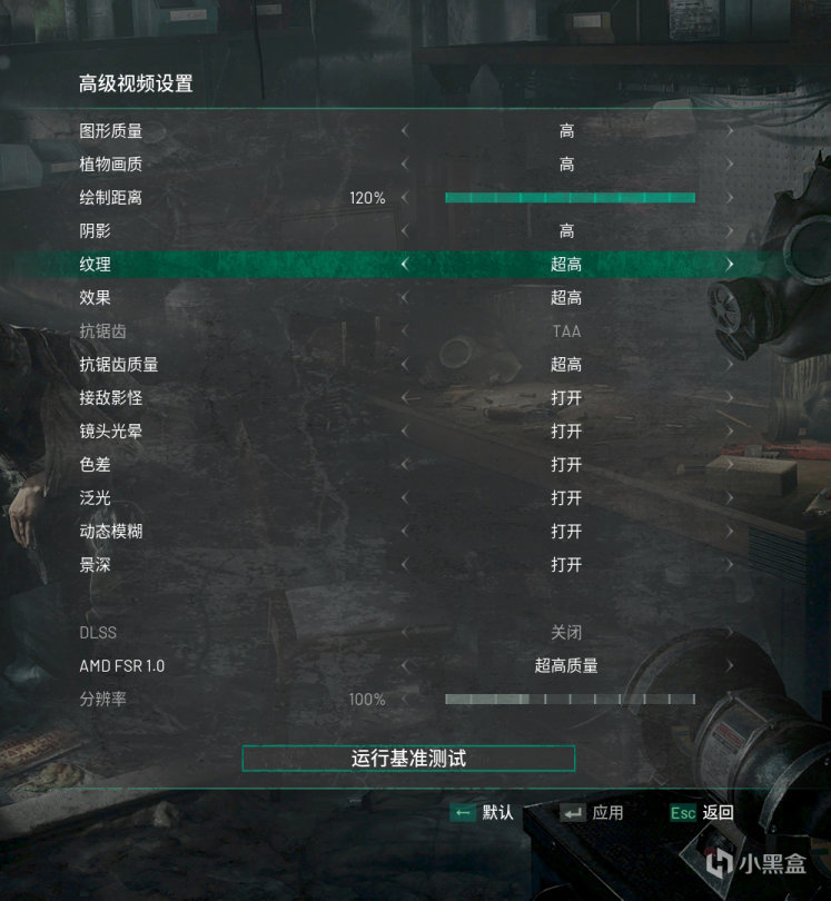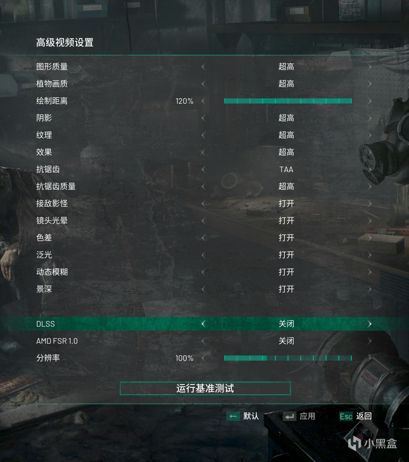 《切尔诺贝利人》正式版已经支持简中,就是翻译和排版有瑕疵,画面设置可调选项不算多,也没有预设方案可选,测试大部分时间都是无脑拉满特效,游戏中的模型不够精致,其中原因之一也许是缺少曲面细分的处理,这款游戏几乎是同时支持DLSS和FSR技术,对于显卡覆盖范围会更广,这里会进行原生、DLSS以及FSR画面一个对比说明。