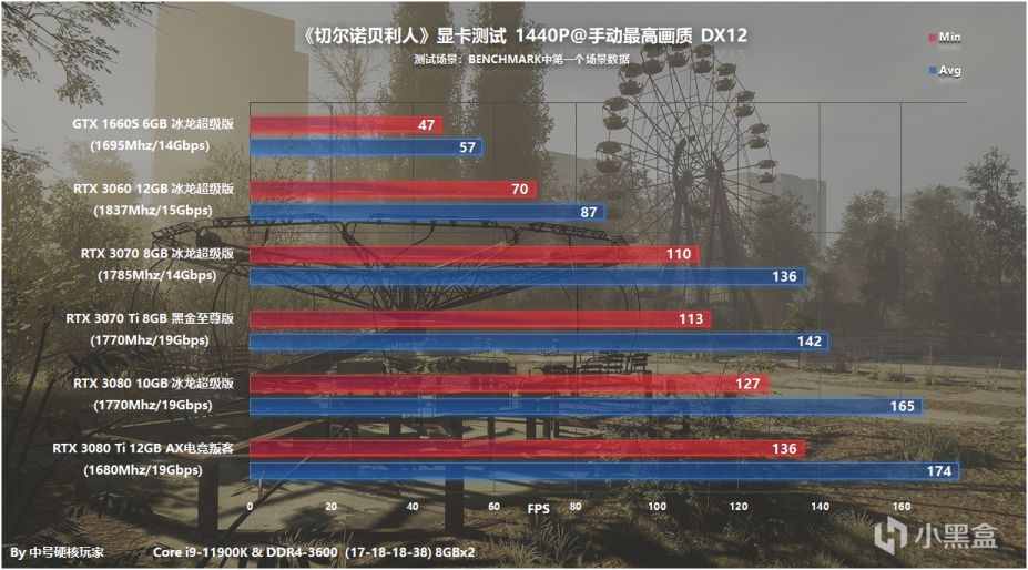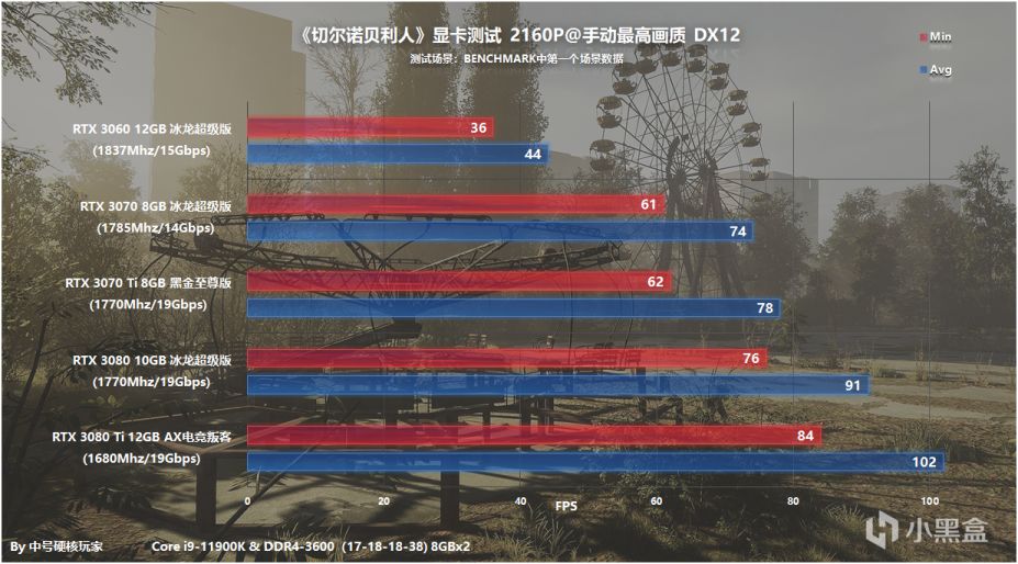 内存是芝奇两条8GB DDR4 3600开X.M.P(17-18-18-38),尽可能贴近用户使用习惯,固态硬盘有十铨DELTA RGB 500GB、三星PM981 512GB两款作为游戏盘,搭载Windows 10 20H2最新系统、最新NVIDIA驱动471.68 WHQL(上个版本针对《切尔诺贝尔人》优化)