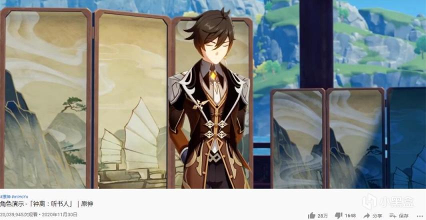 但最近,游戏日报君发现这个传统现象被原神给打破了,因为在B站,原神官方去年11月发布的钟离演示视频《听书人》,正式突破2000万大关。这是什么样的概念?在整个B站游戏区所有官方发布的视频中,原神这个视频播放量能够排进前三。