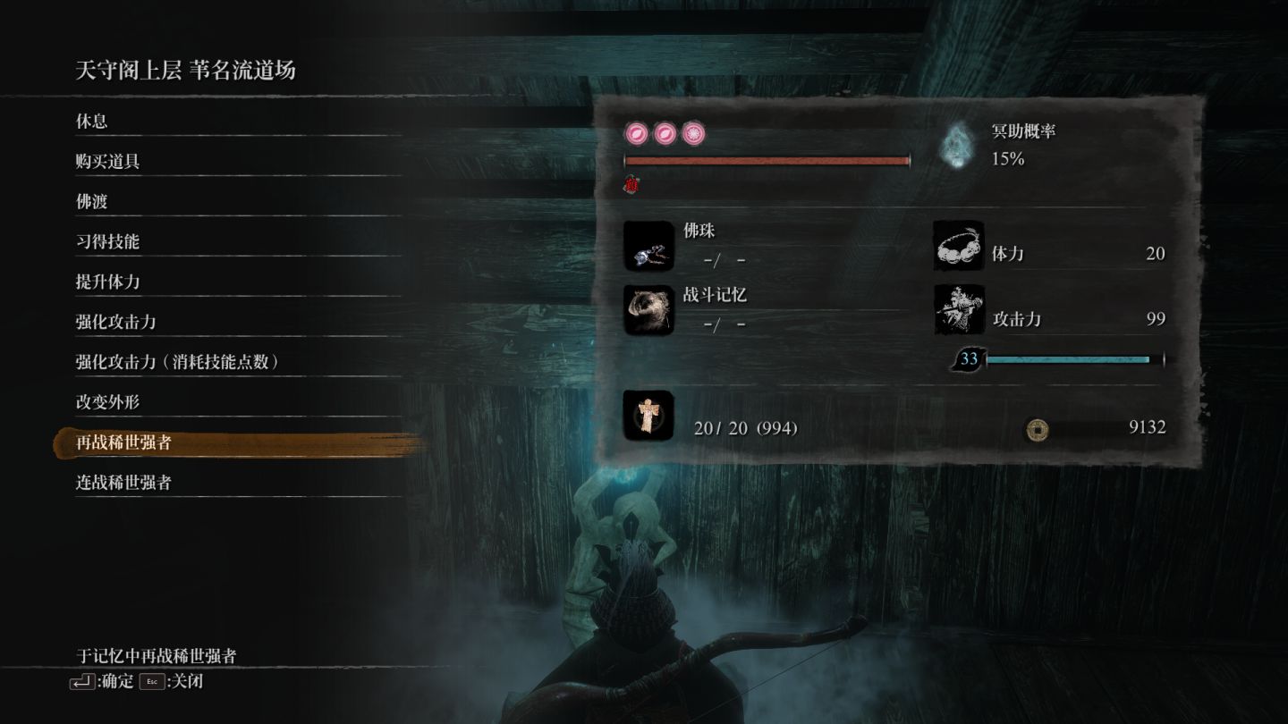 所以玩家玩很多盗版的只狼,会发现没有再战和连战系统,其原因就是游戏版本过低,要么是1.04要么是1.02(当然添加版本过低的mod也会导致再战和连战消失,把mod删了就好了)