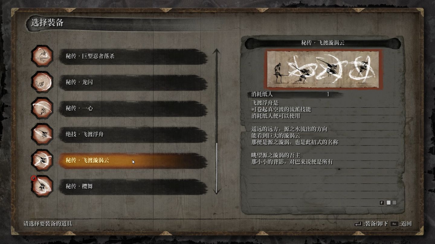 但我们无法使用绝技·不死斩和秘传·不死斩两个忍技,这个背后的不死斩唯一的作用就是让我们在结尾处决破戒僧。