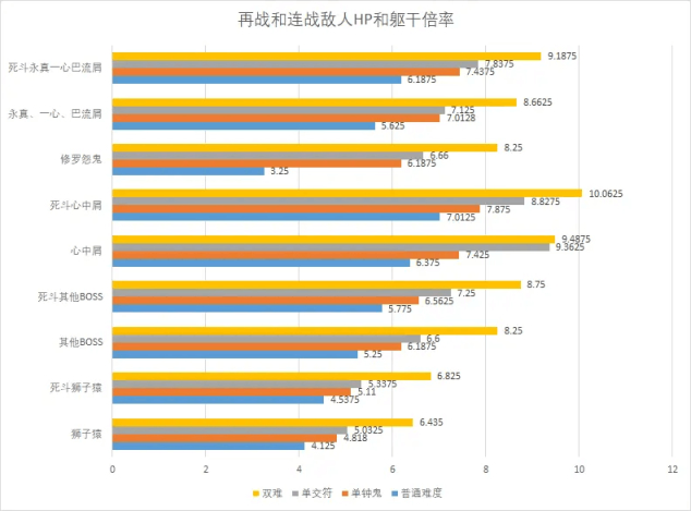 这样就导致对于同一boss,我们表世界有一个倍率,里世界有一个倍率,我们想要比较两个倍率难度虽然可行(大的难,小的简单),但是没法显示出难度的幅度。那么有没有办法能够定出一个比较合理的比较难度方法,不仅能直观看出孰易孰难,还能看出难度系数?