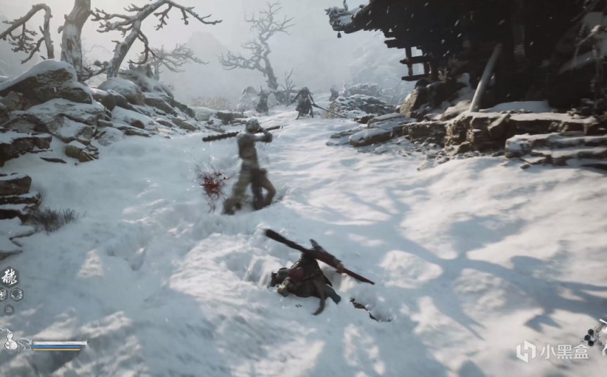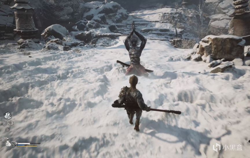 例如在雪地关卡中,小怪濒死前会像醉酒一般胡乱挥舞棍棒。“天命人”与老猴战斗末段,老猴假意求饶后又突然发起了殊死一搏。这些都是令人预料不到,同时又比较罕见的怪物设计,能够很好地通过战斗展现出怪物的性格特点,以及濒死时内心的情绪和状态波动。