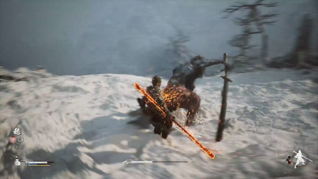 其中每个架势都有着自己独特的技能,像是上面这个将棍杵地,再重击的招式,就只有使用上面这个架势时才见到过。