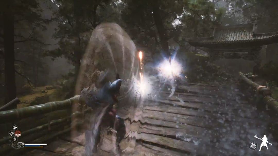 去年看视频的时候没有注意,今年再看才发现有架势变化,这点参考了仁王的设计,分为了三种架势。视频中的绝大部分时间都在使用上图这个架势。