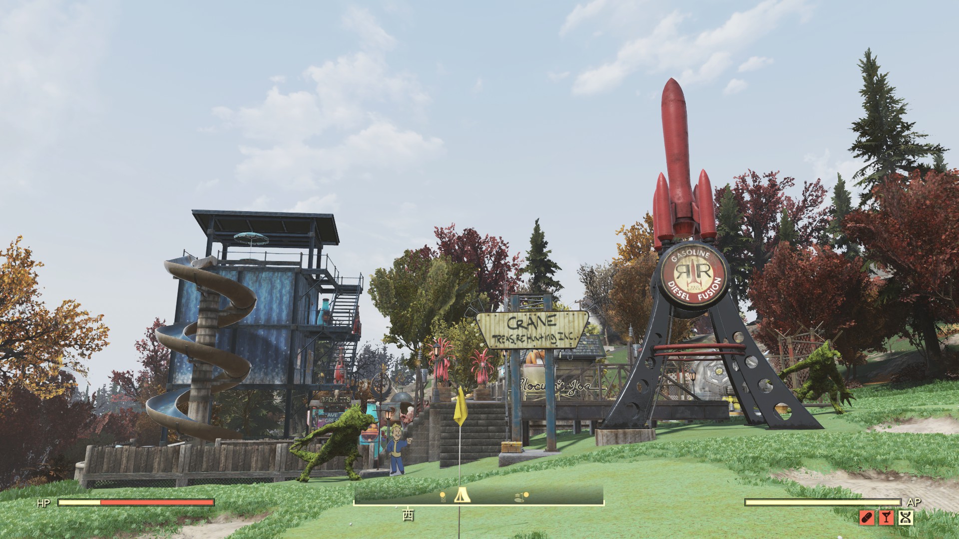 在《辐射76》,玩家可以在原子商店购买各种图纸,并在游戏里建造自己的camp。例如汉斯利用了游戏里白泉的空地建造了一个游乐园。