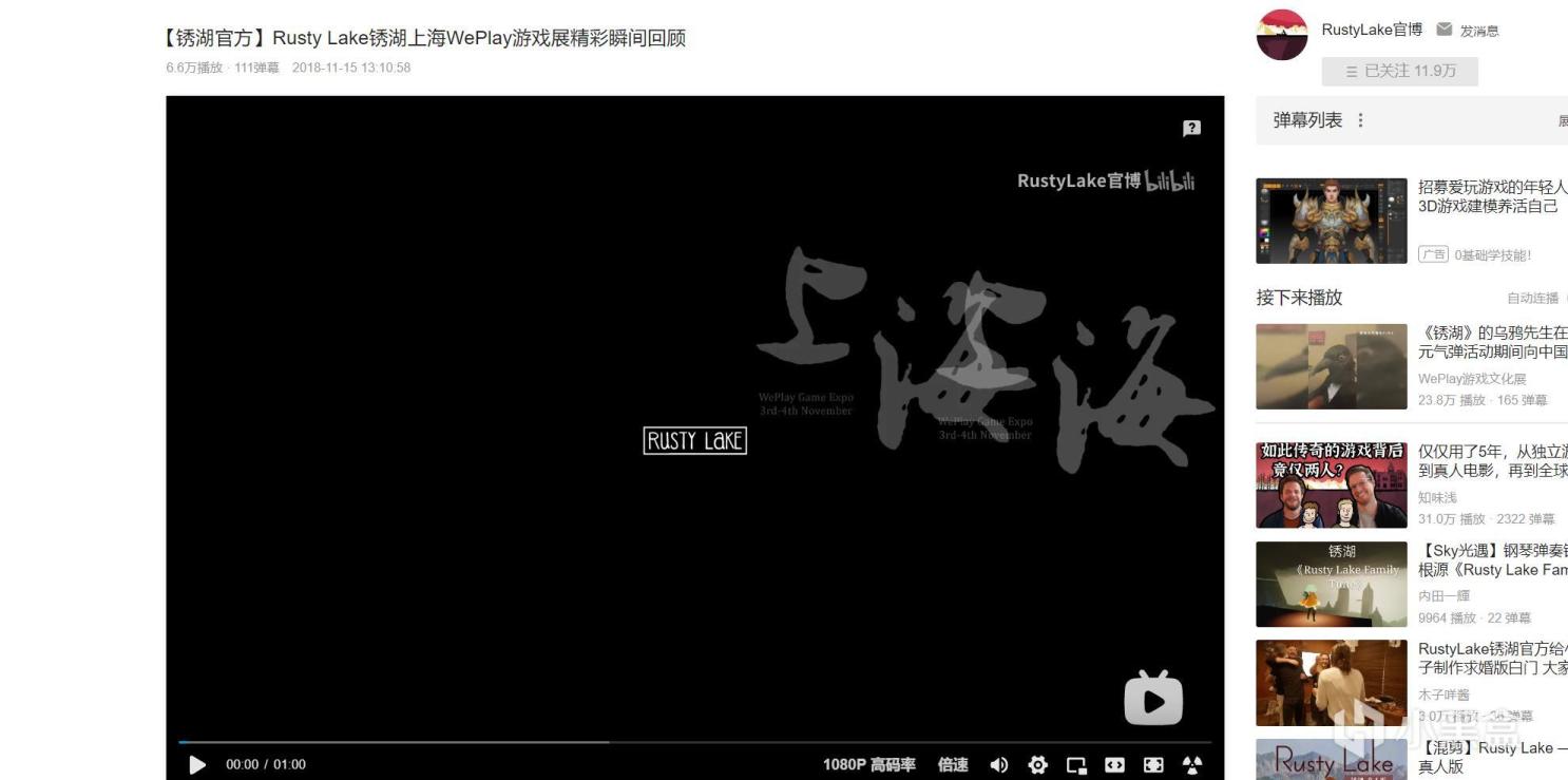 锈湖B站官方号,视频为《白门》白门解谜上海站的精彩回顾