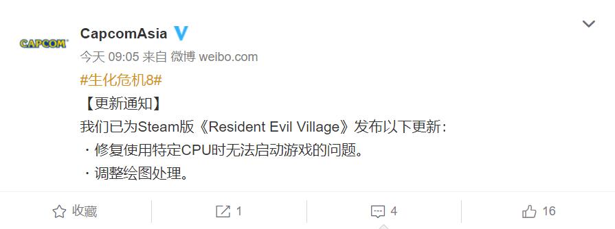 卡普空之前预告将为《生化危机8:村庄》推出新的PC优化补丁,今日该补丁已经正式在Steam平台推出。