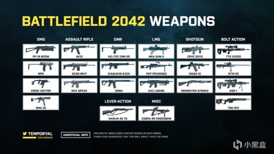 所有的数据都来自国外的战地数据挖掘工temporyal,而这里提到的枪械只是游戏中的一部分,游戏还在测试中,所以正式发售时并不一定都会出现。