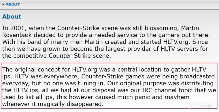 框内大致意思是,HLTV的最初概念是一个收集IP地址并将其集成的地方。CS每天到处都有直播,但是没人看。我们的初衷是收集IP并将其完整列出(供玩家观众观看)。