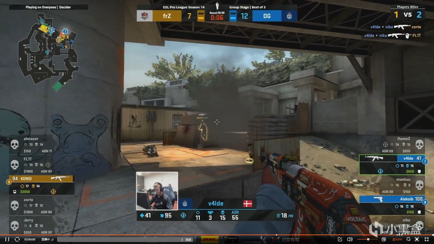 第三回合,valde的cz一波双杀给forZe造成了重创,随着他拿起AK再杀一人,OG拿下了上半场第一分,比分来到2-1