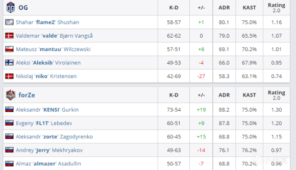 第十五回合,zorte一把狙直接拉2楼,殊不知valde已经来到近点,被直接击杀。面对这单A的forZe,这次OG没有什么悬念拿下,最终上半场比分定格为7-8。