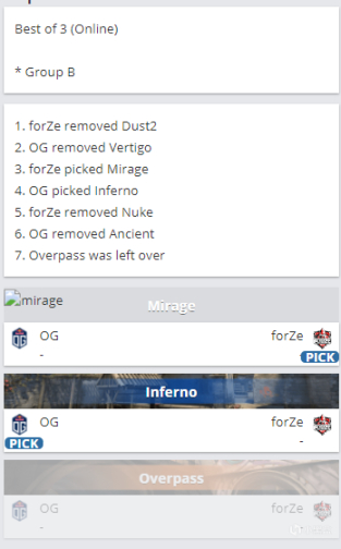 首图是forZe选择的Mirage,图二是OG选择的Inferno,图三是Overpass。