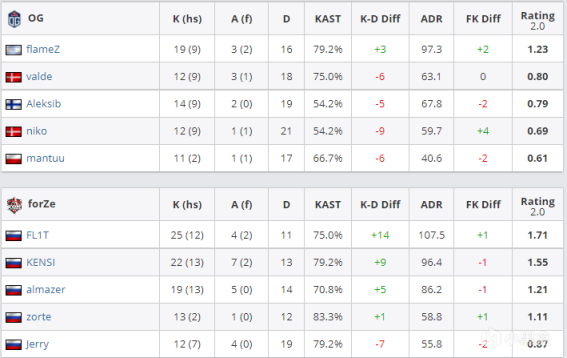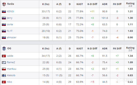第十四回合,forZe好像一下没了气势,OG几波推包点forZe毫无办法,不过这一回合,forZe在每个点都成功架住了枪,终于再拿下一分,最后一回合forZe在厕所枪法出现了一点失误,不过最终还是KENSI绕后成功,上半场比分最终定格为9-6。