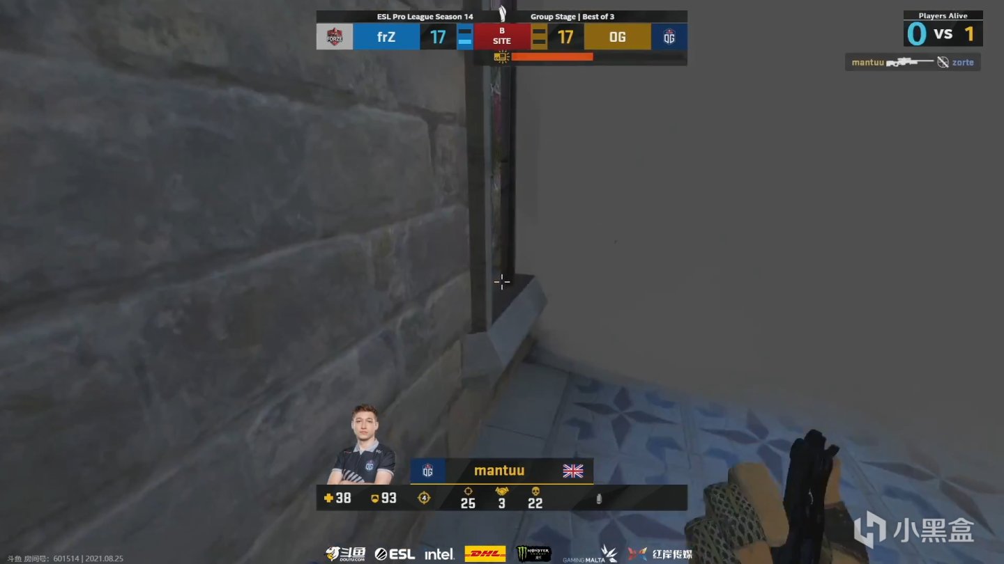 第二十二回合,OG开局4B开局,forZe直接提速打A区,然而mantuu这回合站了出来,在包点直接完成4杀,成功再一次把比分追平来到11-11。