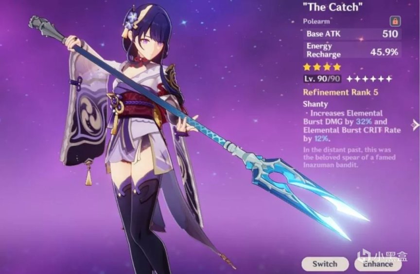 那么渔获只适合雷神么?并不是。香菱同样可行,作为依靠元素爆发输出的角色,高耗能的香菱同样无法拒绝快乐的渔获。可以说,渔获这武器就是把高性价比4星武器,练了不亏~