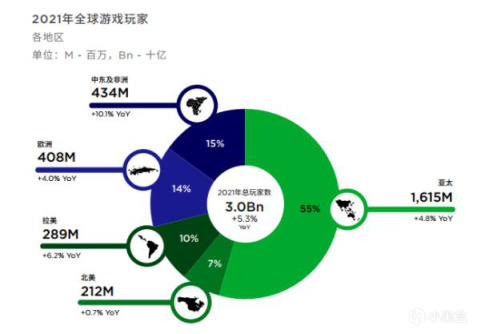 在Newzoo的《2021全球游戏市场报告》中指出欧洲拥有4.08亿的游戏总人口,不过我们查阅了多个数据源,并没有统计机构给出过具体的欧洲主机玩家总人数和占比,因此无法给出较为准确的数字。