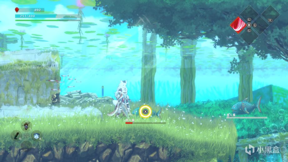 在游戏的操作方面,强烈推荐使用手柄。需要注意的是,虽然游戏有新手教程告诉你按键键位,但是却忘了告诉玩家RT是翻滚,导致自己刚上手时还以为游戏没有闪避的功能,只能硬抗伤害呢。游戏的操作整体上比较简单,常规的移动、轻重攻击,神技释放也不复杂。