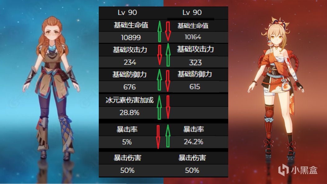 基础三维属性方面,埃洛伊生命值、防御力略强于宵宫,但基础攻击力弱了一大截。少了89点,满级数值和雷泽一样234点,位列提瓦特第22名。宵宫突破拥有高贵的暴击率增幅,而埃洛伊则是28.8%的冰伤加成。基础属性伤害方面:埃洛伊<宵宫。