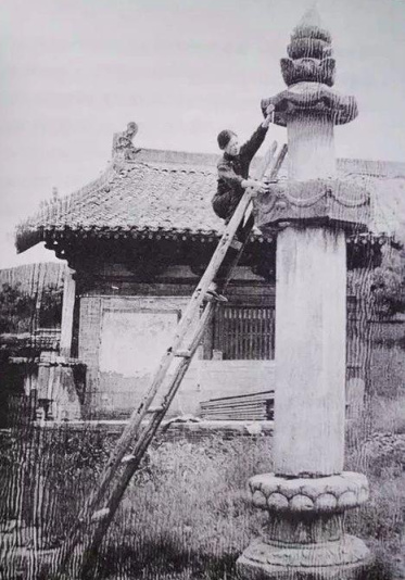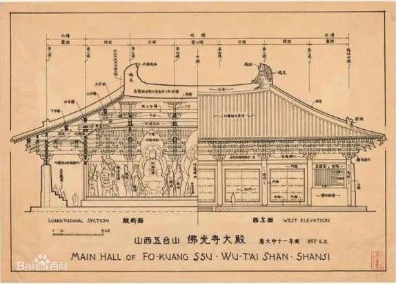 起初梁思成并不能认定这就是唐代或唐代以前的建筑,但在东大殿南侧有一座砖塔与敦煌壁画上所绘的砖塔一模一样,梁思成凭经验断定属唐代建筑,最后,他们在僧人帮助下搭起架子,拭去千年尘封,终于在大殿木梁找到唐代墨书,和殿外的石经幢相互应证!