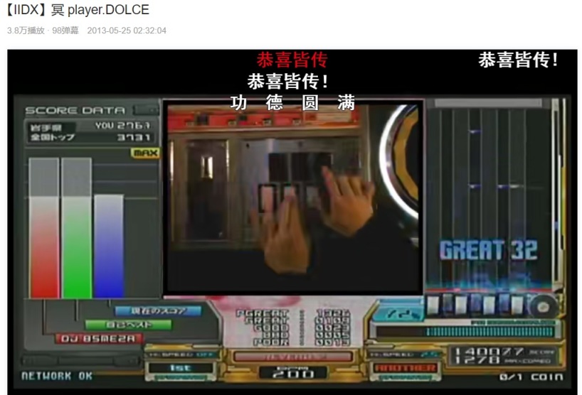 以音游名曲《Daisuke》为例——本曲诞生于Beatmania IIDX 10 Style中,一开始是游玩视频被上传到niconico、YouTube和Vine等平台,后来因为其魔性的舞蹈动作,就有人开始上传模仿视频和梗图,之后,日本网民上传了很多《Daisuke》和动漫片段、J-POP缝合的二创作品。近几年,这些内容开始在中国音游玩家群体中广泛传播,音游玩家们对于本曲“接歌词”与“接动作”两种玩法乐此不疲,包括BGA中浴室、强光等要素也能成为玩梗要素。