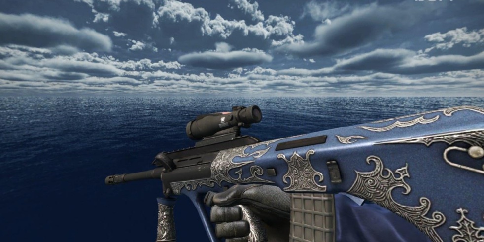深蓝的底子,浮雕风格,高高在上的感觉。我太喜欢浮雕(资深浮雕爱好者)AUG也适合新手,弹道差不多随便都可以压一个点。