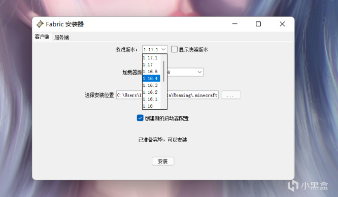 fabric是直接下载的,在安装页面选择版本,加载器版本直接默认最新的