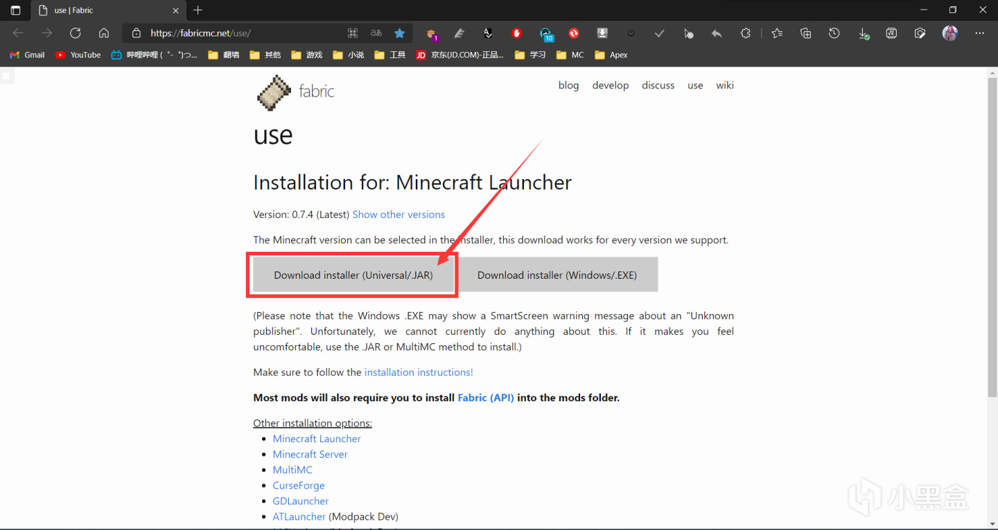 先去fabric的官网use | Fabric (fabricmc.net) 下载fabric和forge下载有所不同